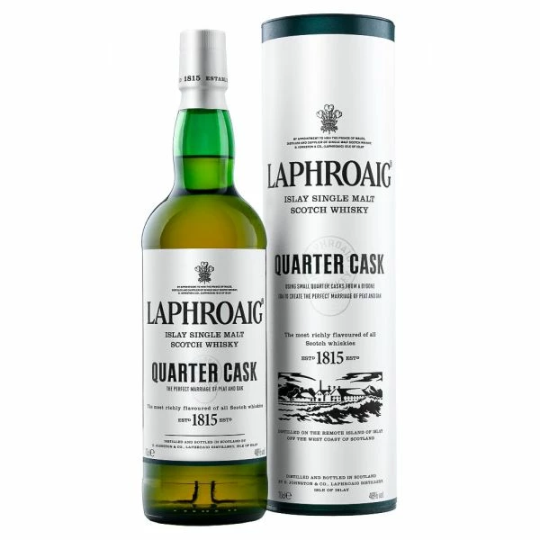 Laphroaig es una marca particular, con unos whiskies de calidad que no sucumben a tendencias o modas. Este Quarter Cask es una vuelta a sus principios, usando barricas más pequeñas y un doble añejamiento, que le otorgan matices diferenciales con respecto a otros whiskies de su gama