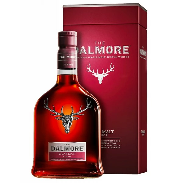 The Dalmore Cigar Malt Reserve es un escocés de múltiples expresiones que le proporciona el tiempo que añeja en barricas de roble blanco donde reposaron bourbon americanos, olorosos, vinos de cabernet Sauvignon y vinos dulces de Jerez.